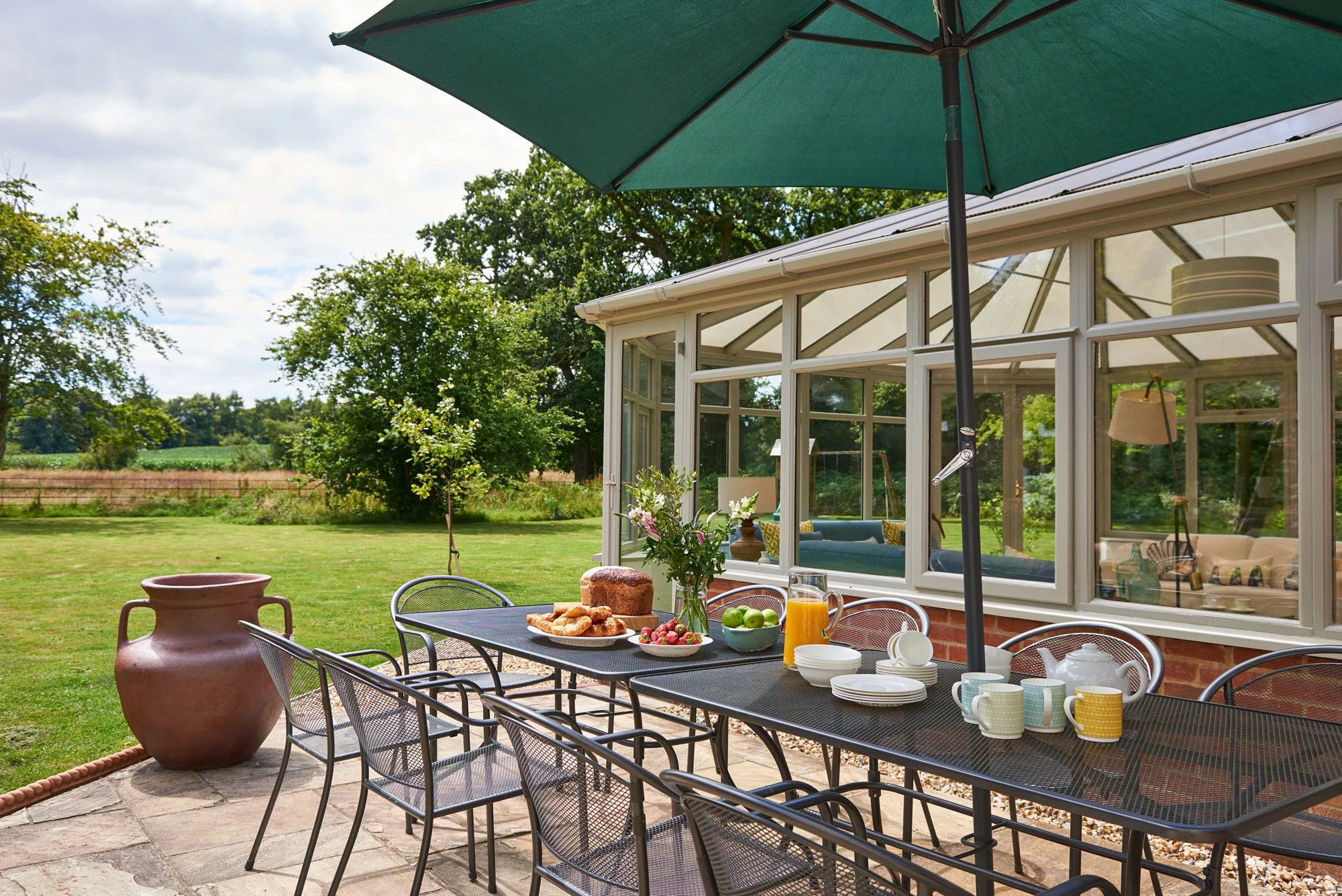 Outdoor tables and chairs on the terrace (seating 10–16)